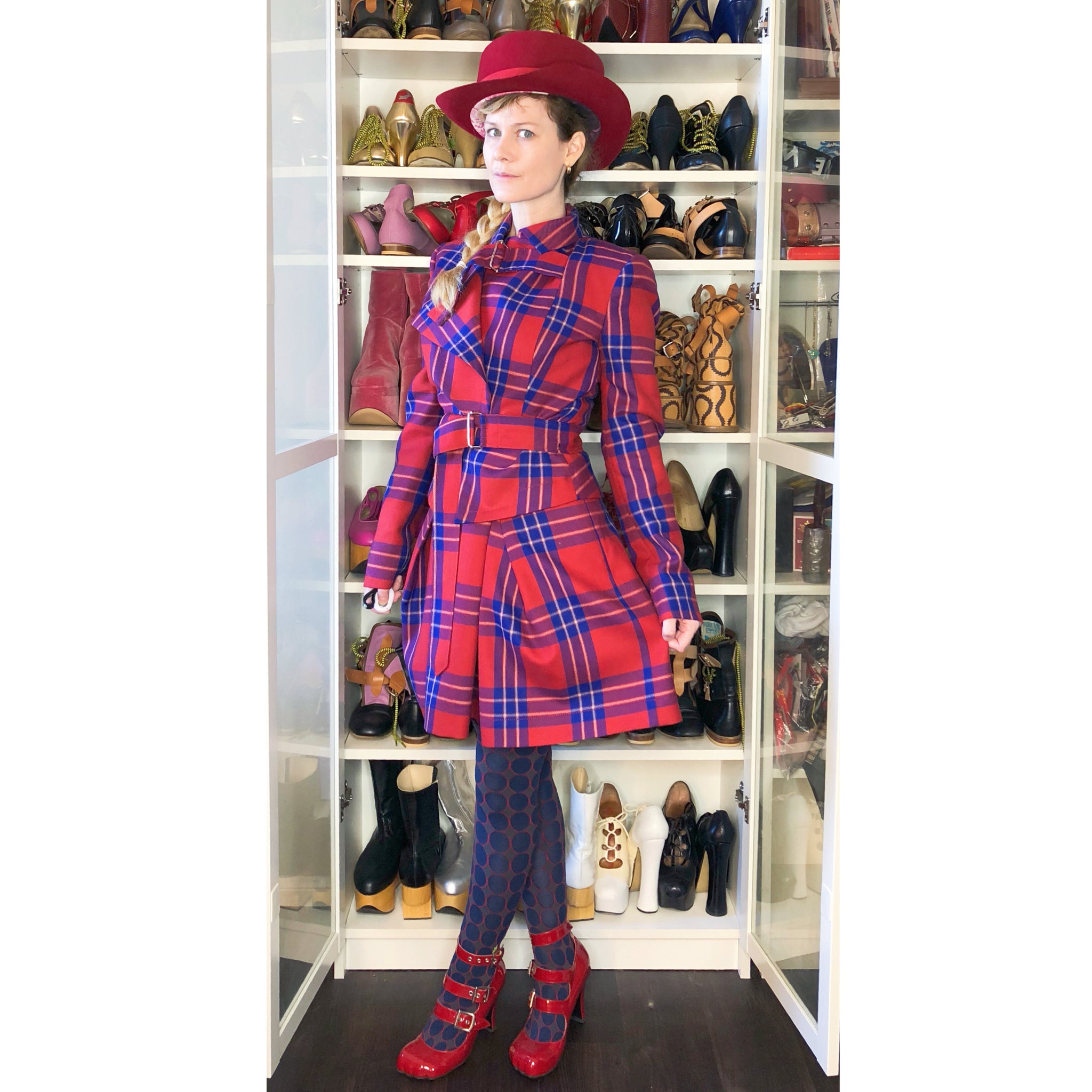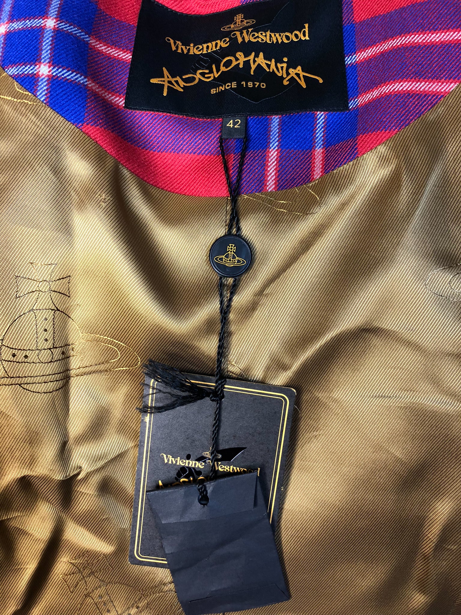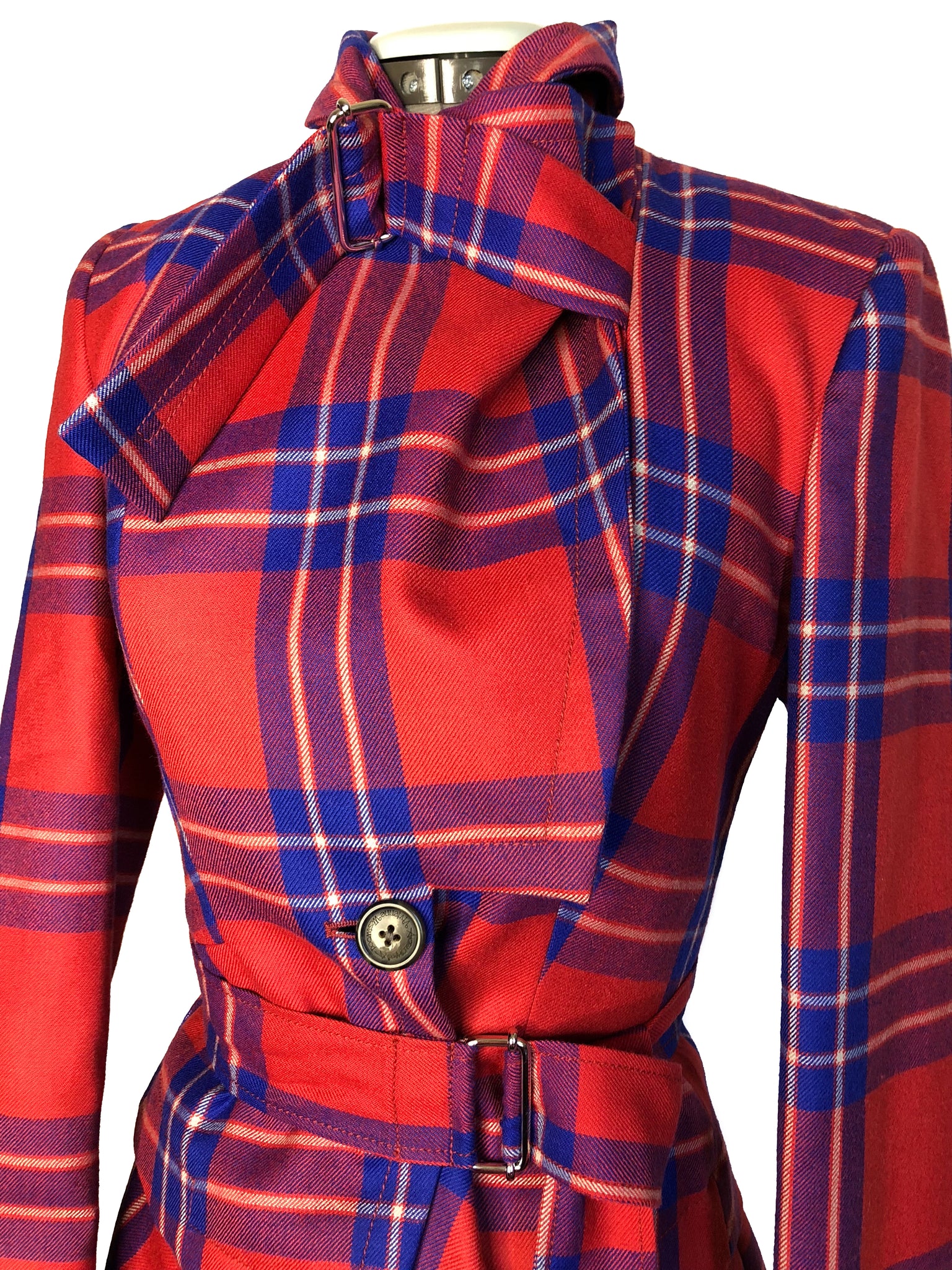 Vivienne Westwood Anglomania AW 2014 Lyon Tartan Windmill Bondage Jacket and Trail Skirt Suit Set