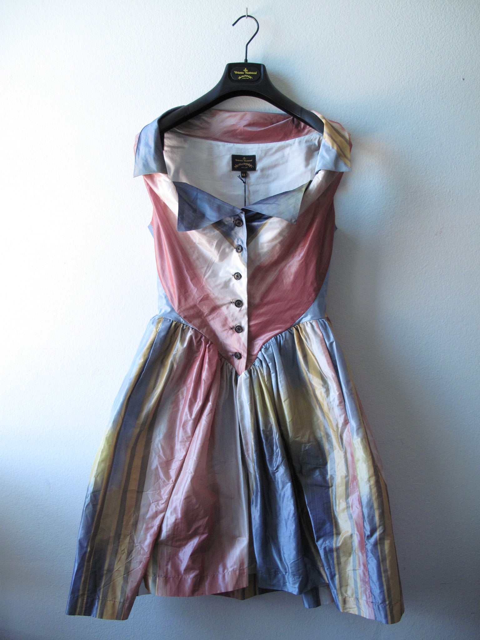Vivienne Westwood Anglomania Multi-Color Pastel Pink Blue Yellow Taffeta Monday Dress