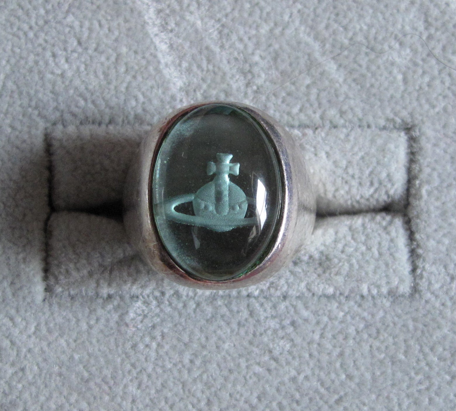 Vivienne Westwood Accessories Label Blue Cabochon Sterling Silver Orb Ring